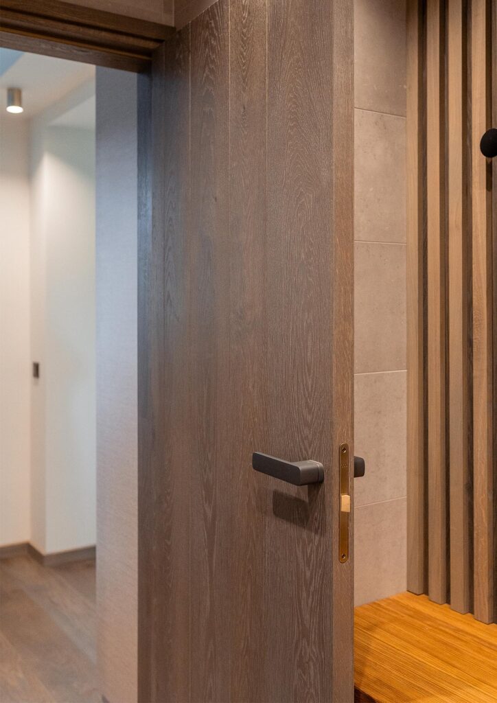 Drzwi Plank Select w tym samym kolorze dopełniają całość. Ich prosta, elegancka forma i delikatnie widoczna tekstura dębu sprawiają, że idealnie łączą się z podłogą, tworząc spójną i estetyczną przestrzeń. Klasa drewna Select — prawie bez sęków i dużych różnic kolorystycznych — dodaje wnętrzu subtelnej elegancji i podkreśla jakość naturalnego drewna.