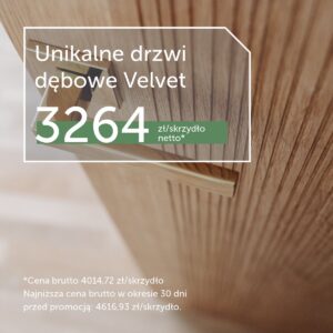 - Podana cena obejmuje wyłącznie skrzydło drzwiowe – ościeżnica, listwy i pozostałe elementy dostępne są za dopłatą.