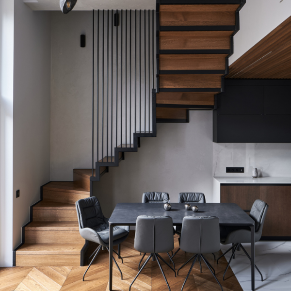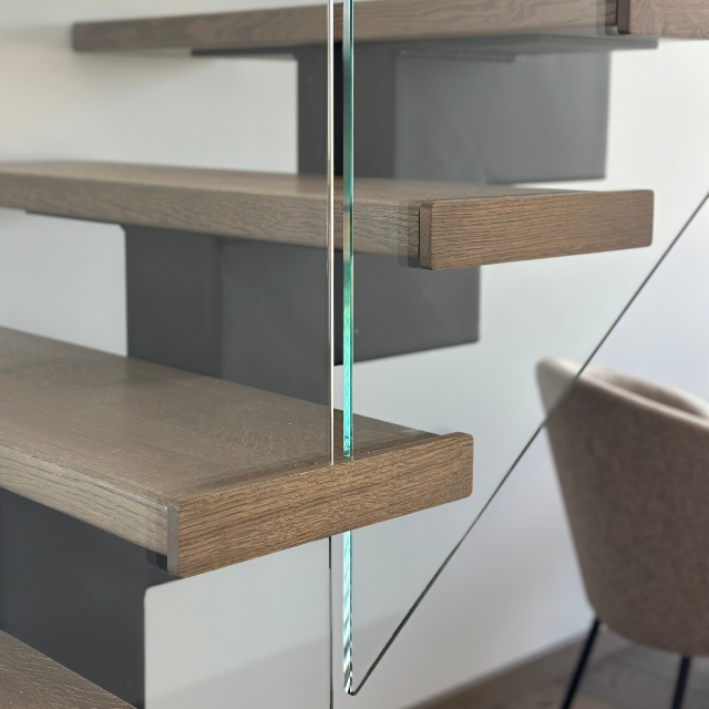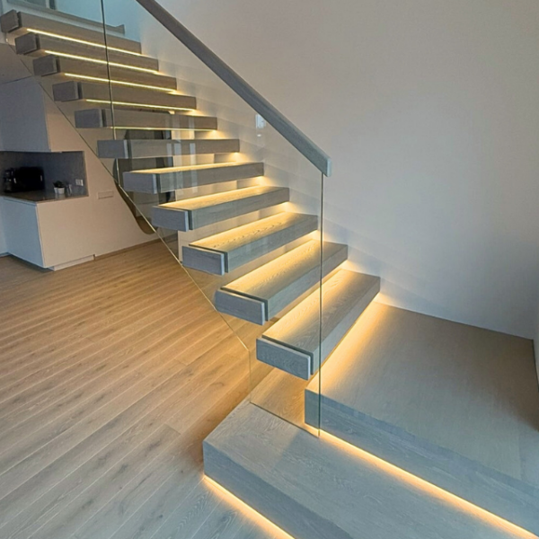 Każde schody są projektowane indywidualnie pod kątem układu architektonicznego i otworu – prostego, w kształcie litery L, w kształcie litery U lub pływającego – zapewniając płynną integrację z wnętrzem.